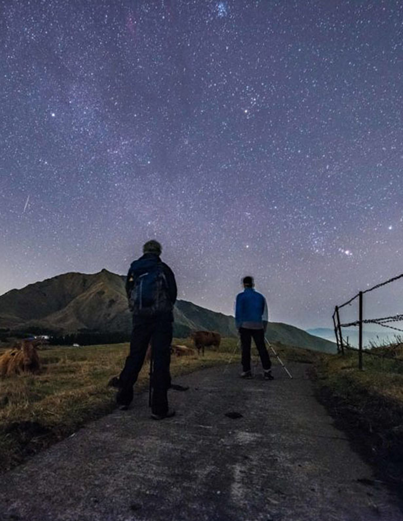 夜の山散歩で、 星と静寂に包まれる時間を過ごす。南阿蘇 夜の山散歩