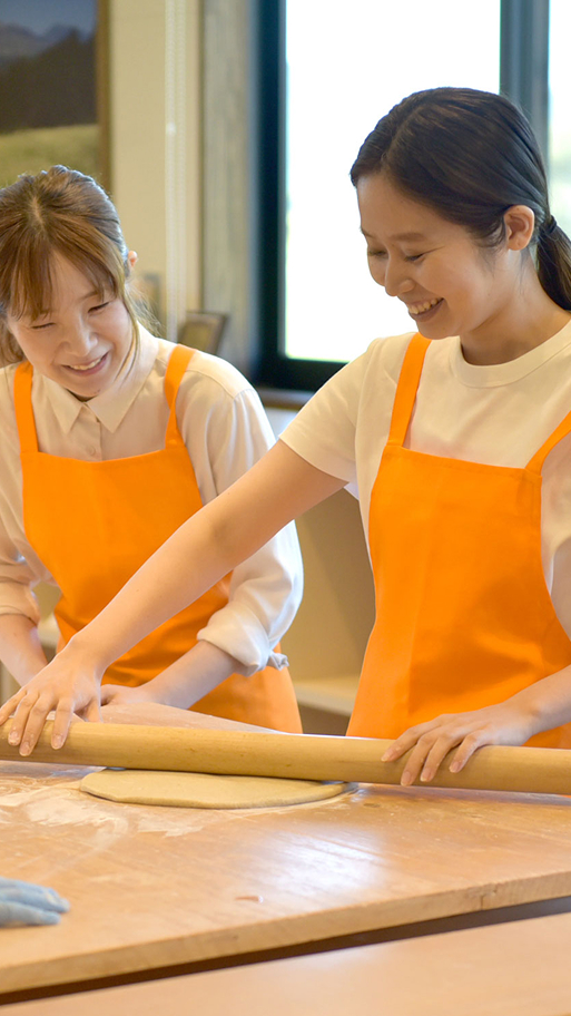 自ら打つそばの風味は格別、 そば打ち体験。そば打ち体験