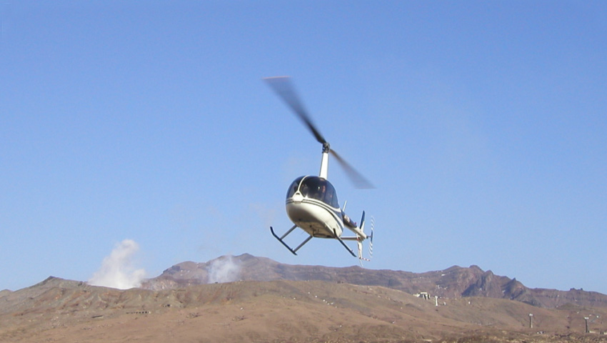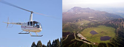 風が強いと少しスリルもありますが、左右に旋回しながらの阿蘇山中岳火口の噴煙へ接近は、大迫力!噴煙に近づくと、火山独特の硫黄の臭いがします。ヘリコプターの遊覧と阿蘇山中岳火口を同時に楽しめます。