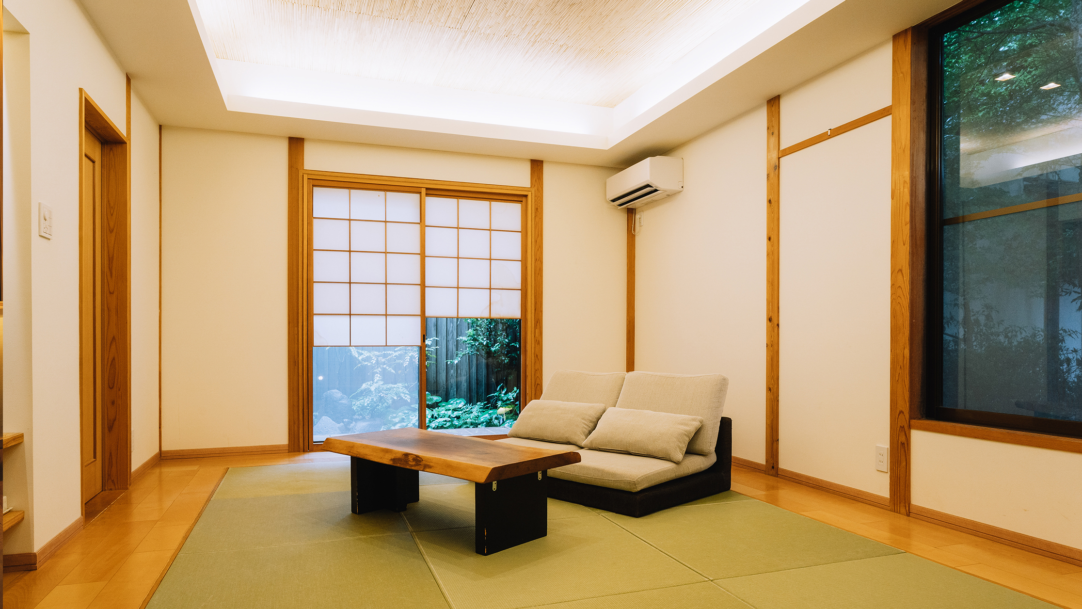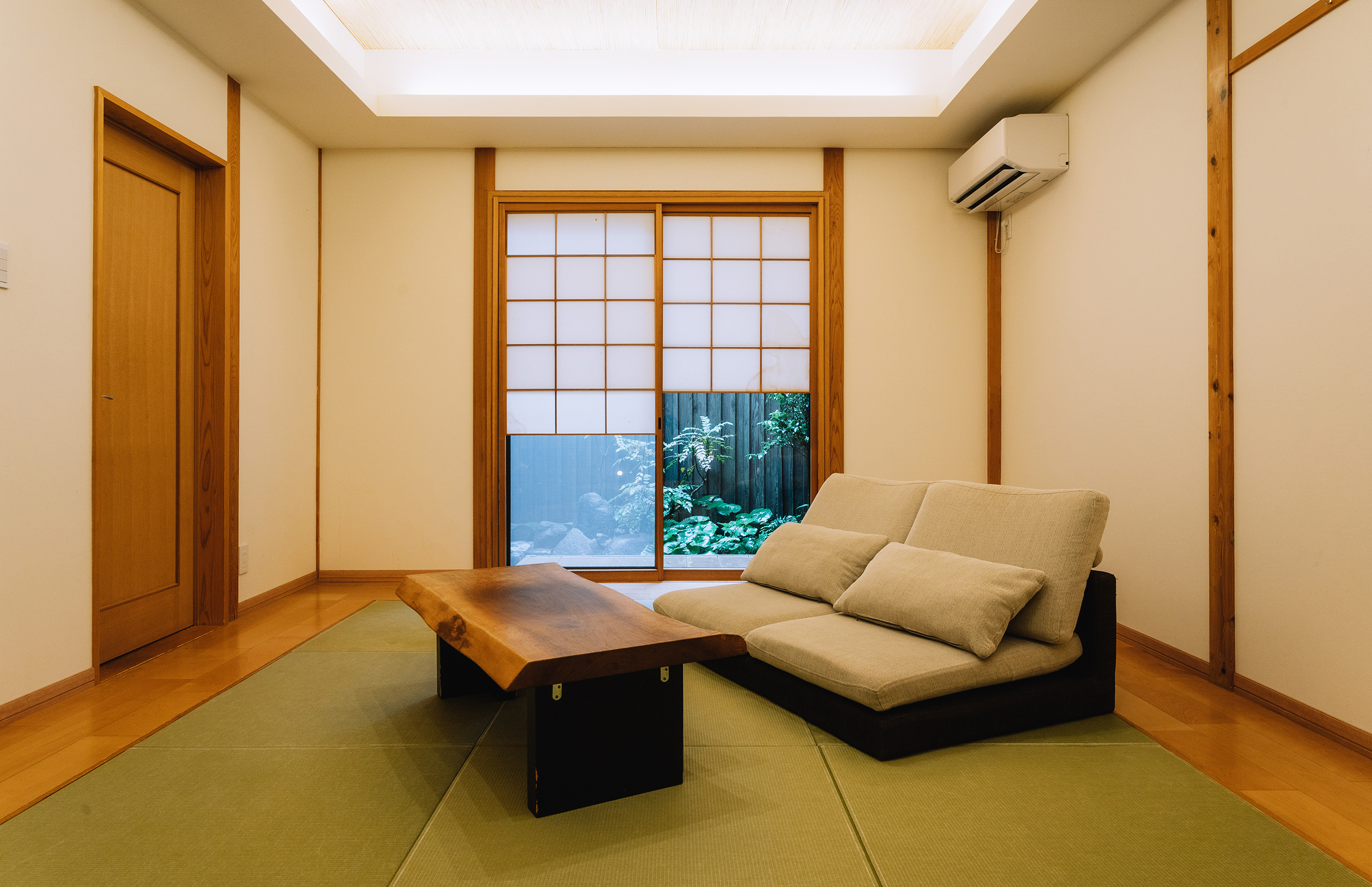自然の光、緑の美しさに囲まれた、自然を存分に味わえるお部屋です。ソファでゆっくり座っても、畳でごろごろと過ごしても。それぞれの寛ぎの時間を過ごせます。